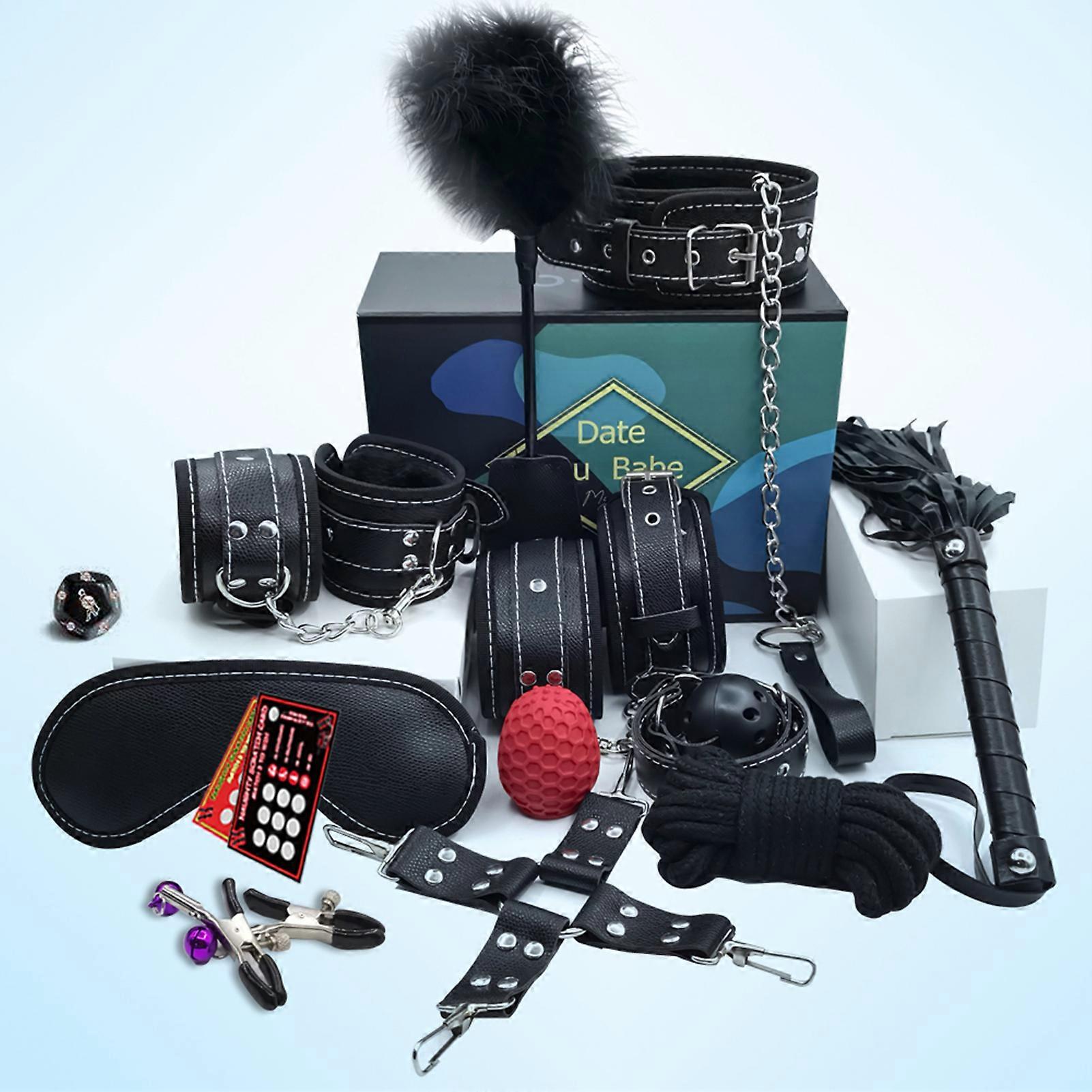 13Pcs SM Adults Sexual Toys Set Handcuffs Ankle Cuffs Eye Mask Leather Whip Cotton Rope Game Cards