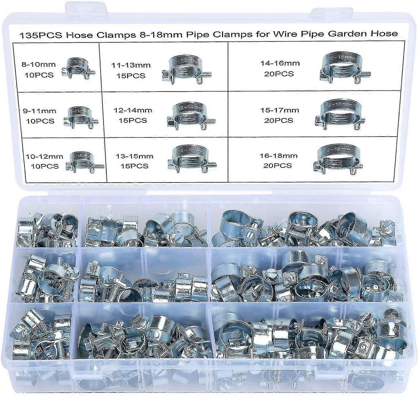 135pcs Hose Clips Spring Clip Hose Clamps Zinc Plated Clip Clamps For Washing Machine Wire Cable Garden Hose (8-18mm) Hy