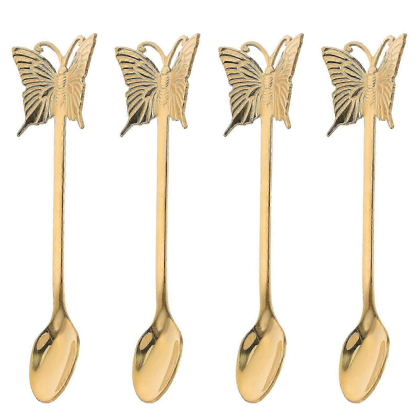 Long Handle Teaspoon Stainless Steel Long Handle Spoons Hotels 13.50X2.00X0.30CM Golden Eating Desserts 4Pcs