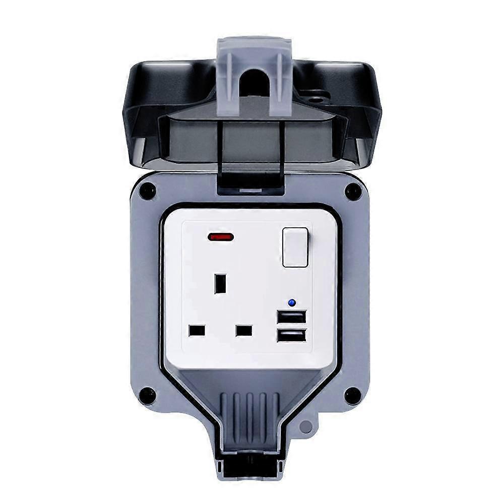 13AOutdoor IP66 Waterproof Socket Box Weatherproof Wall Electrical Outlets USBWithout socket switch(1pcs, grey)