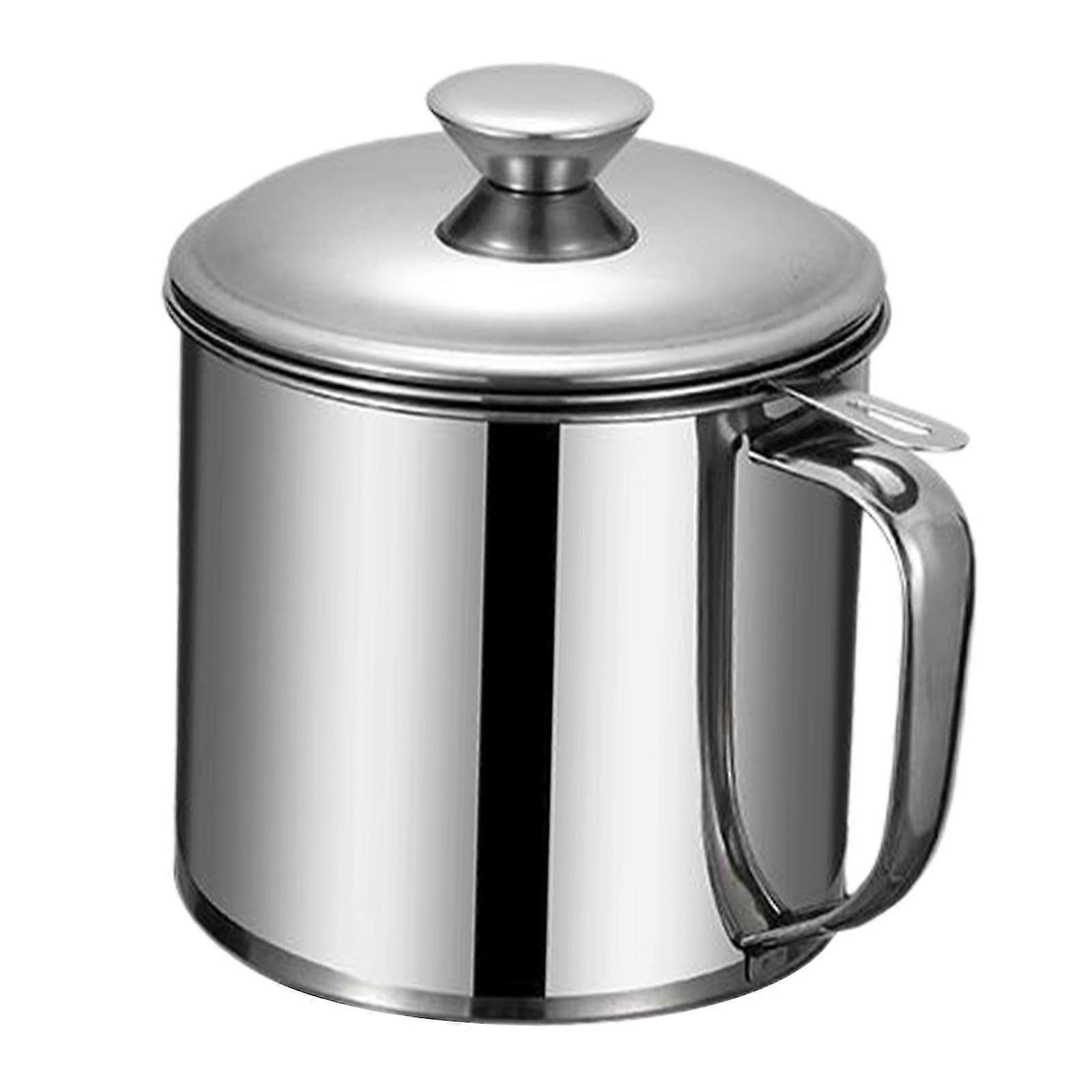 1.3L Grease Container with Strainer Basket & No Drip Spout, Oil Storage Pot for Deep Frying and Bacon Fat Keeping