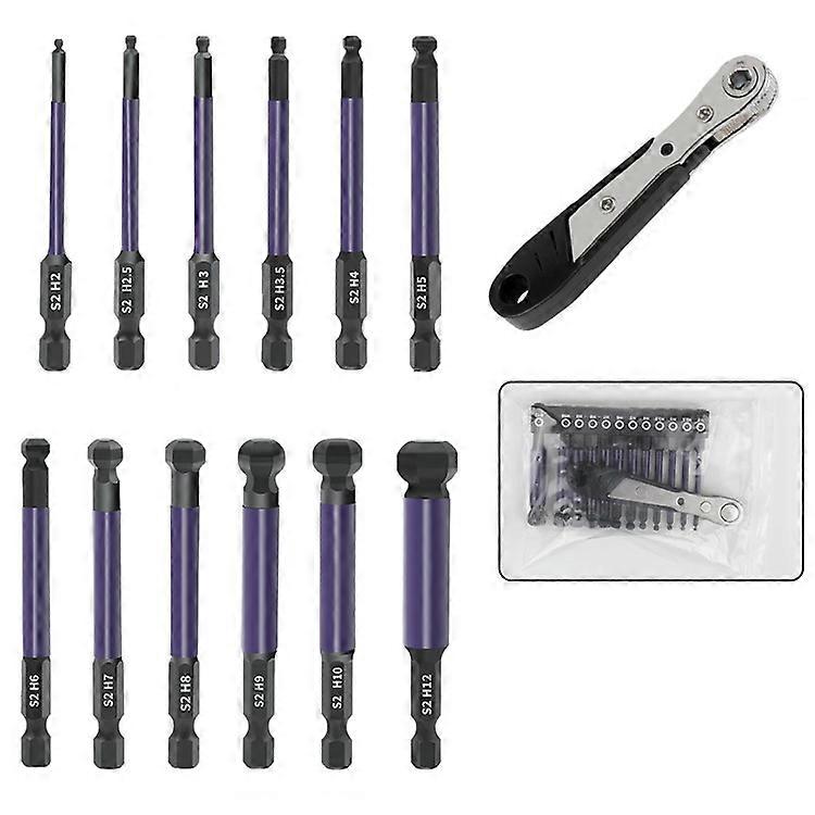 13Pcs / Set 1 / 4 Inch Shank S2 Alloy Steel Hexagonal Ball End Screwdriver Bits with Mini Ratchet Wrench