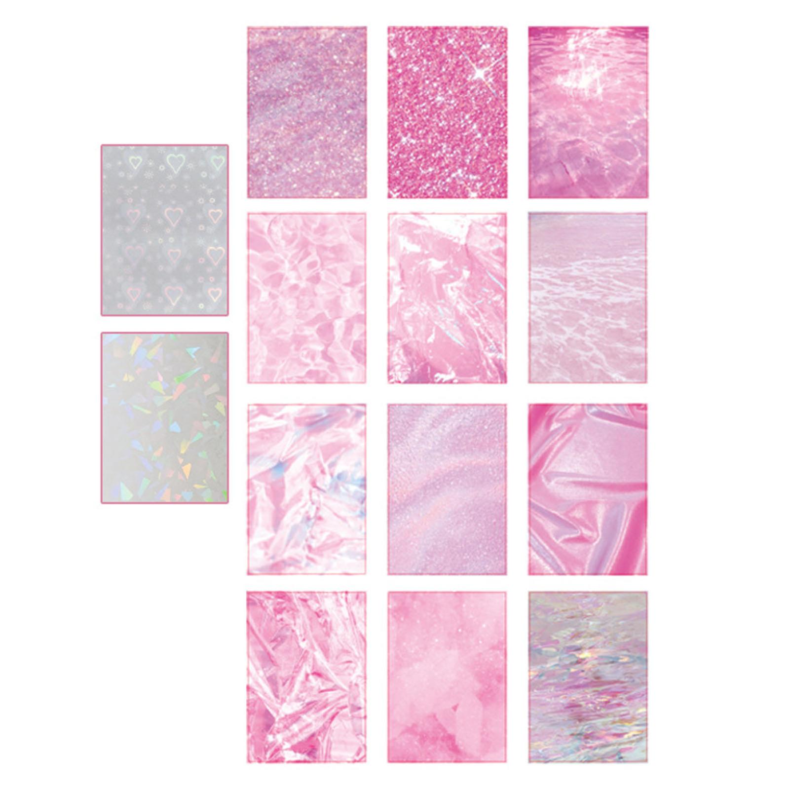 14PCS Foil Holographic Sticker Aesthetic Easy Apply PET Long Lasting Scrapbook Sticker for Album Water Bottle Gifts Pink
