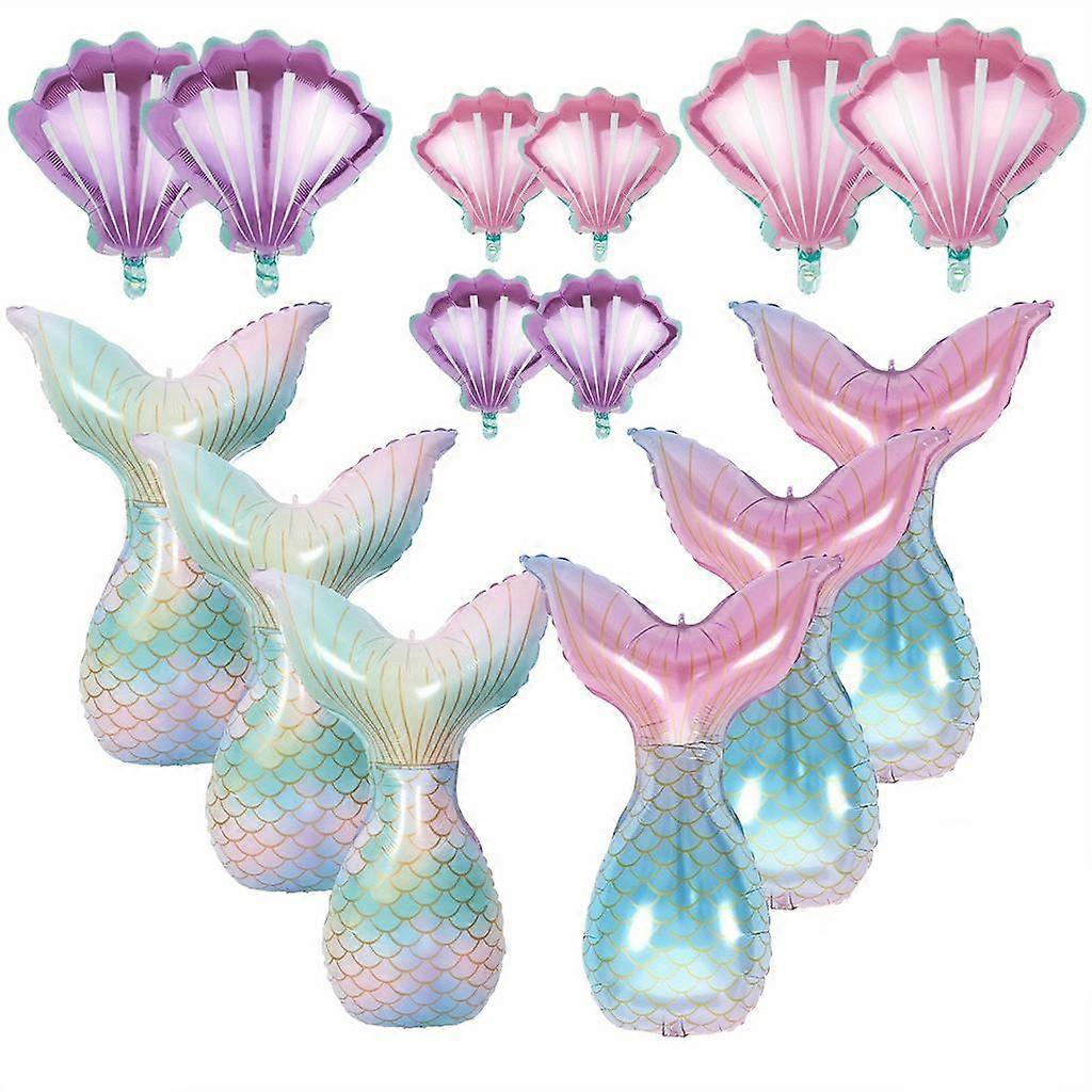 14Pcs Mermaid Theme Aluminum Film Balloon, Cartoon Fish Tail Shell, Baby Kids Birthday Princess Ocean Fairy Tale Party Decorations