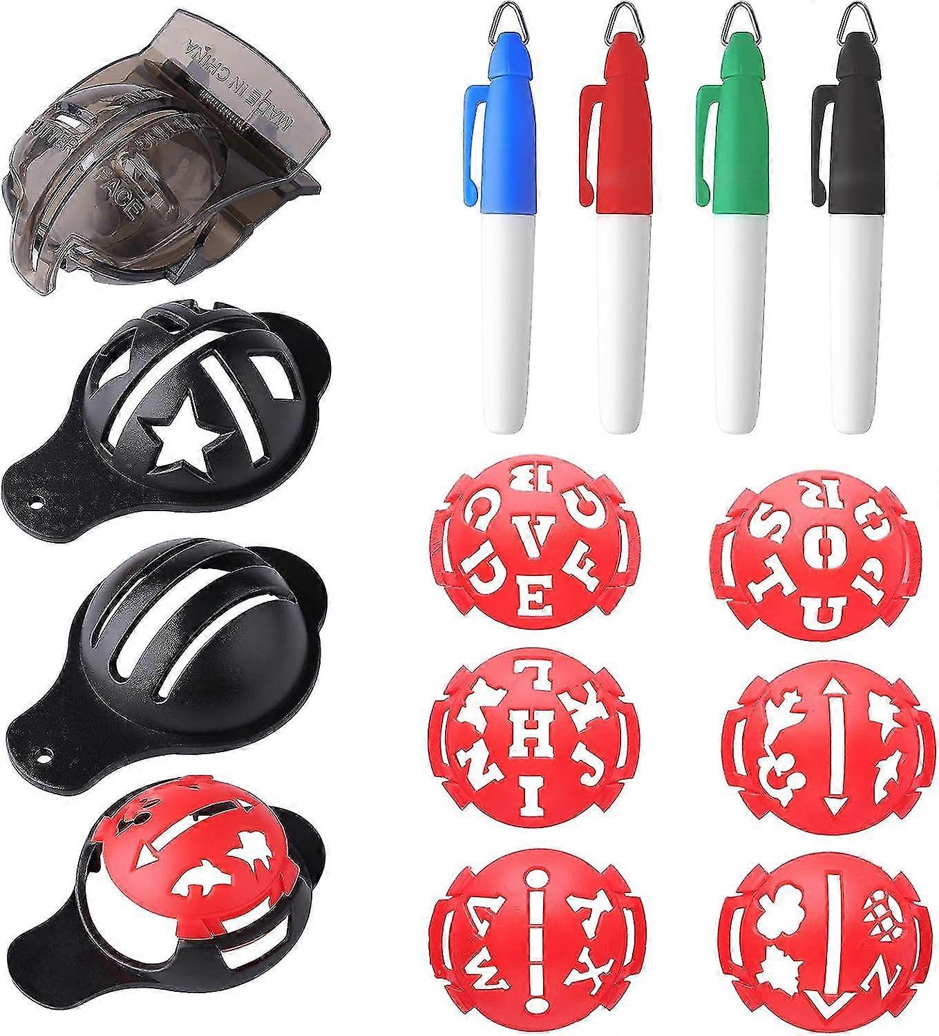 14pcs Golf Ball Line Marker Tool Kit, Including 4pcs Golf Ball Liners 4pcs Marker Pens And 6pcs Letter Stencils Golf Ball Alignment Tool Black