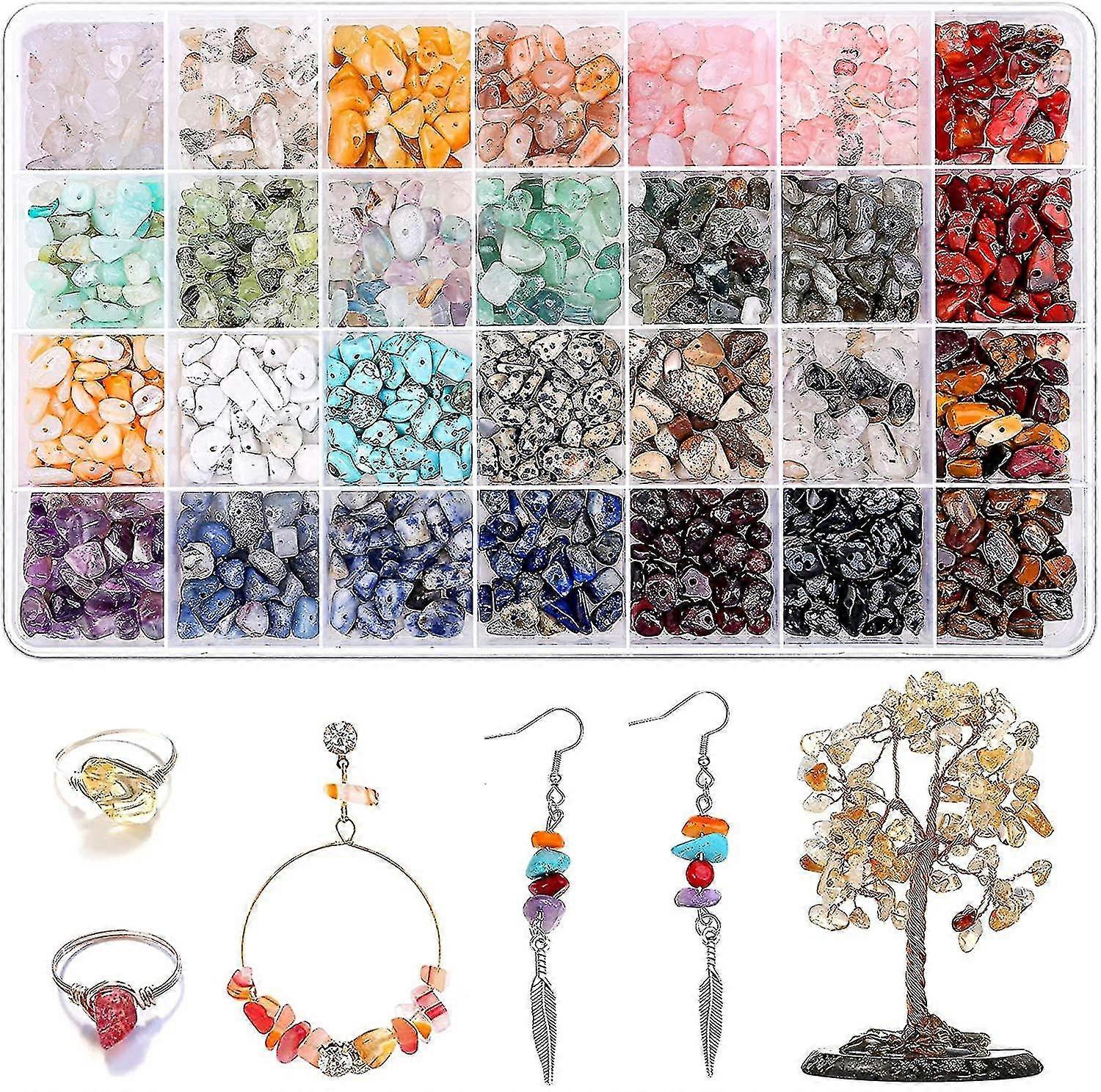 1400 Pcs Crystal Jewelry Making Kit,28 Colors Gemstone Beads For Jewelry Making, Irregular Stone Beads For Necklace Bracelet Ring Earring Making