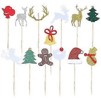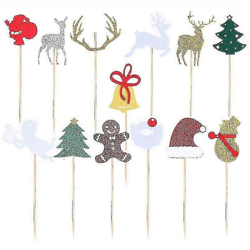 14pcs Glitter Snowman Elk Xmas Tree Gingerbread Man Christmas Cake Toppers Picks For Christmas Birthday Cake Decoration Supplies (set 2 And Set 3))