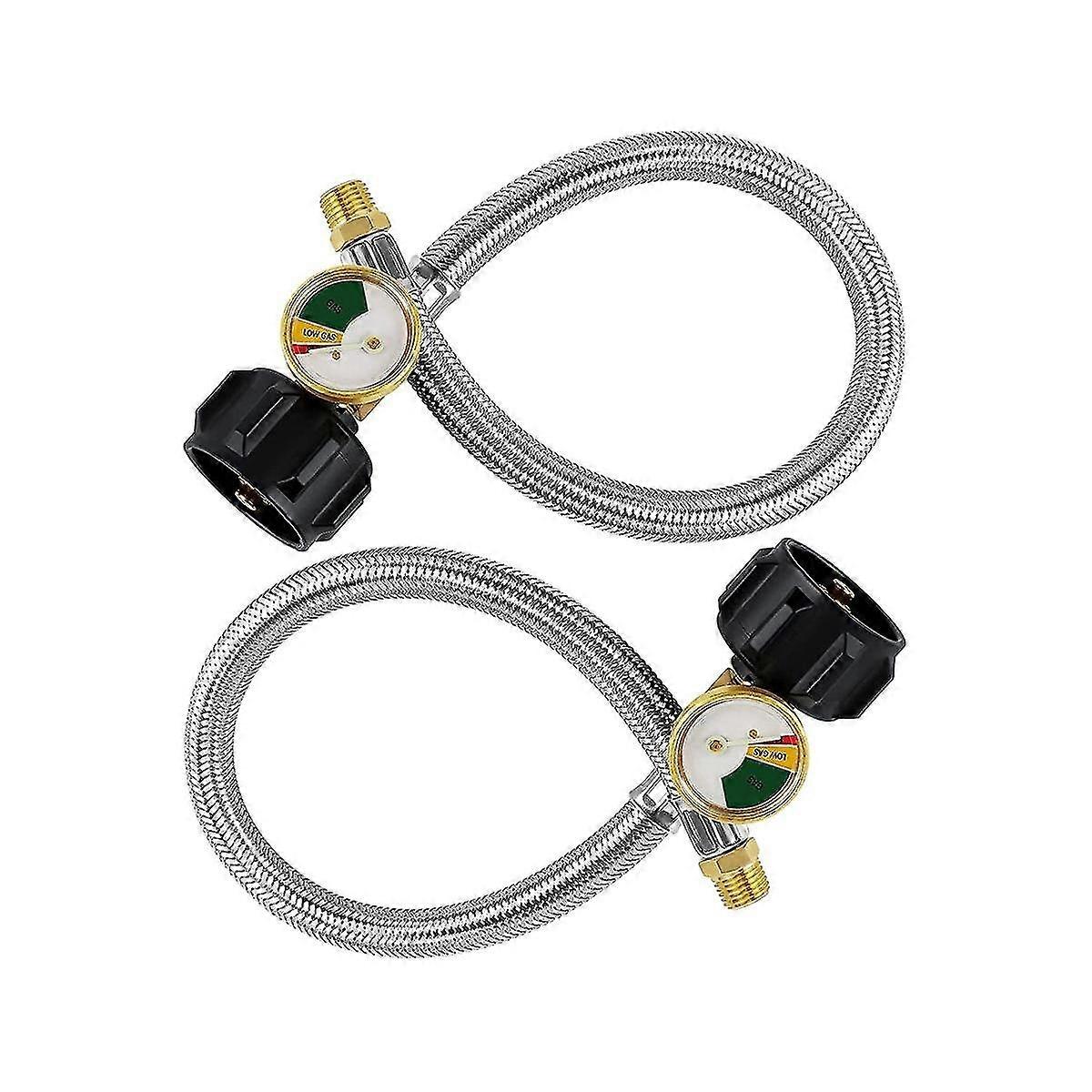 15 Inch Rv Propane Hose Pigtail With Gauge compatible with 5-40lb Tanks - Stainless Braided Propane