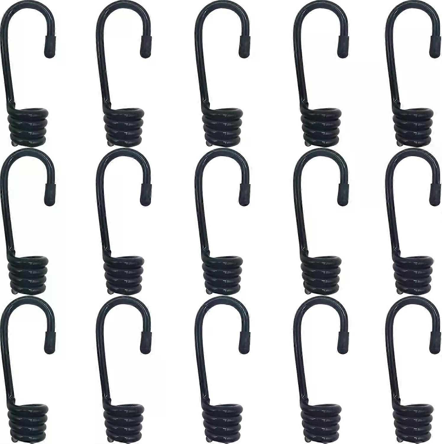 15PCS, 8 Inch Plastic-Coated Bungee Shock Cord Hook, Spiral Wire Hooks, 9mm Diameter for Outdoor Automotive Camping
