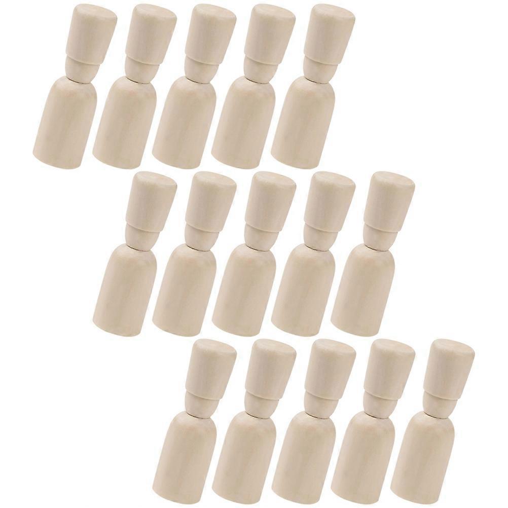 15pcs Wooden Peg Dolls Manual Painting Dolls Unfinished DIY Wood Puppets