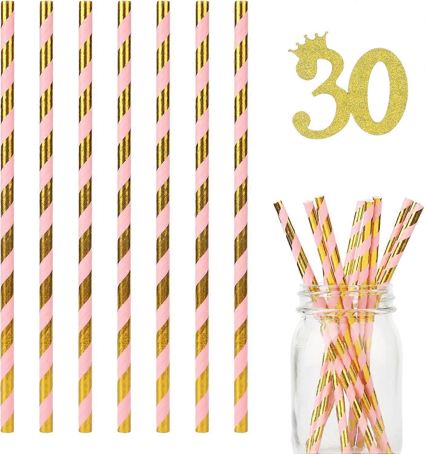 15pcs 30th Birthday Straws, with Crown 30th Birthday Decorations for Women 30th Birthday Decor Paper Straws Party Decoration Glitter Paper Straws for