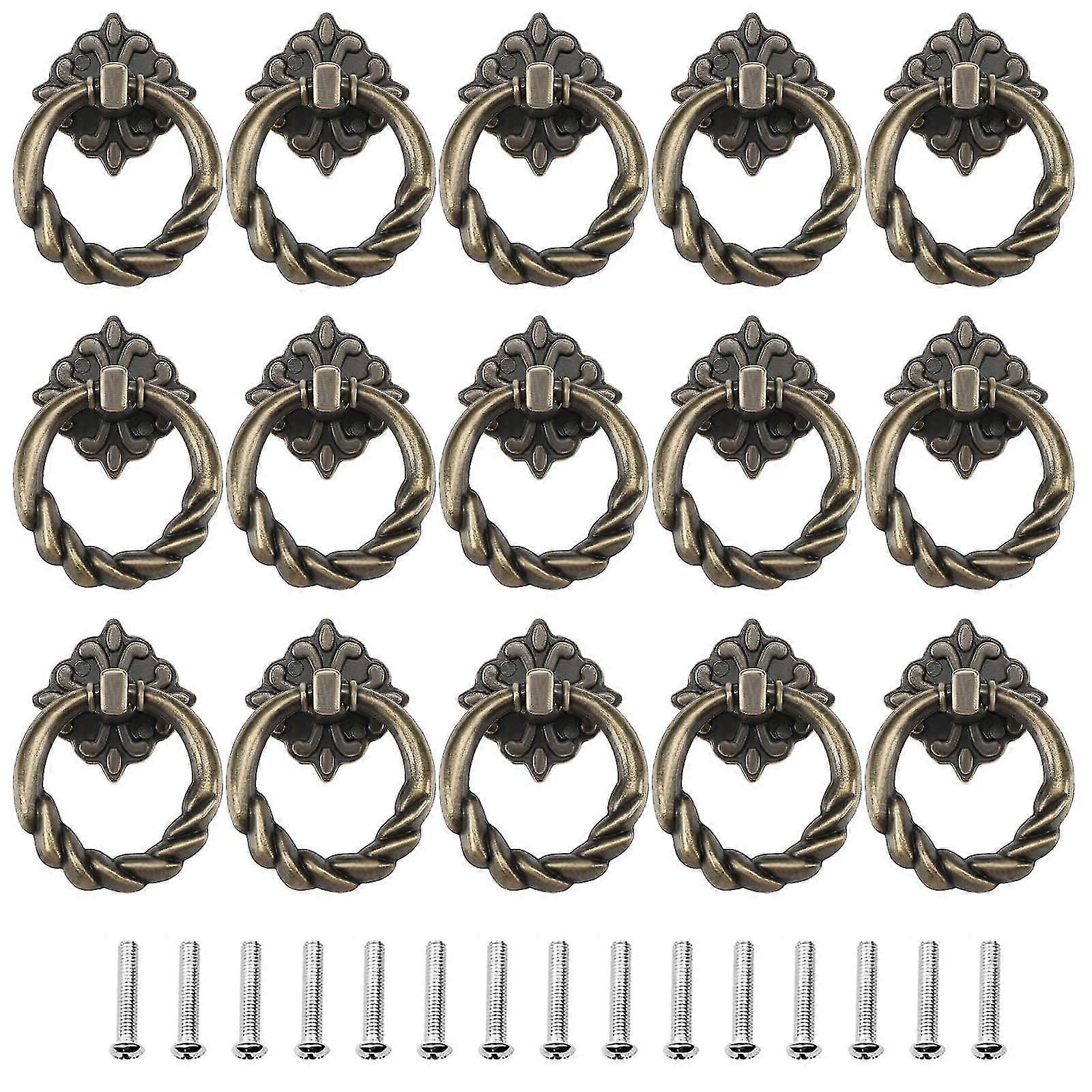 Retro design: The color is green bronze, the unique shape and style retro give people a classic feeling. The door handle has a smooth surface without edges vivid and will not hurt your fingers. High Quality Material: These retro handles are made of zinc alloy. Ring knobs and handles have an antique look. Durable and not easy to fade. Usage: for cabinet, drawer, trash can, cupboard, wardrobe, etc. Exquisite decoration: make your jewelry box or furniture look more exquisite, also ideal for DIY. Product Description Retro drawer pull instructions Product name: Drawer retro pull ring Technical data of retro pull ring Pull ring color: green bronze Pull ring material: high quality zinc alloy Products included in the package 15 * retro drawer pull ring 15* screws Reminder Manual measurement, please allow 1-2mm error