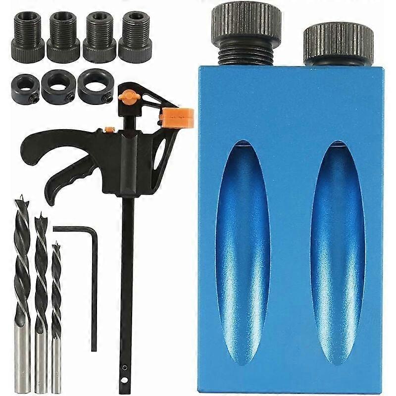 15pcs Oblique Drilling Jig with 15 Drill Bits Carpenter Positioner, Pocket Hole Jig, Wood Corner Drilling Guide with Adapter for 6/8/10mm Hole
