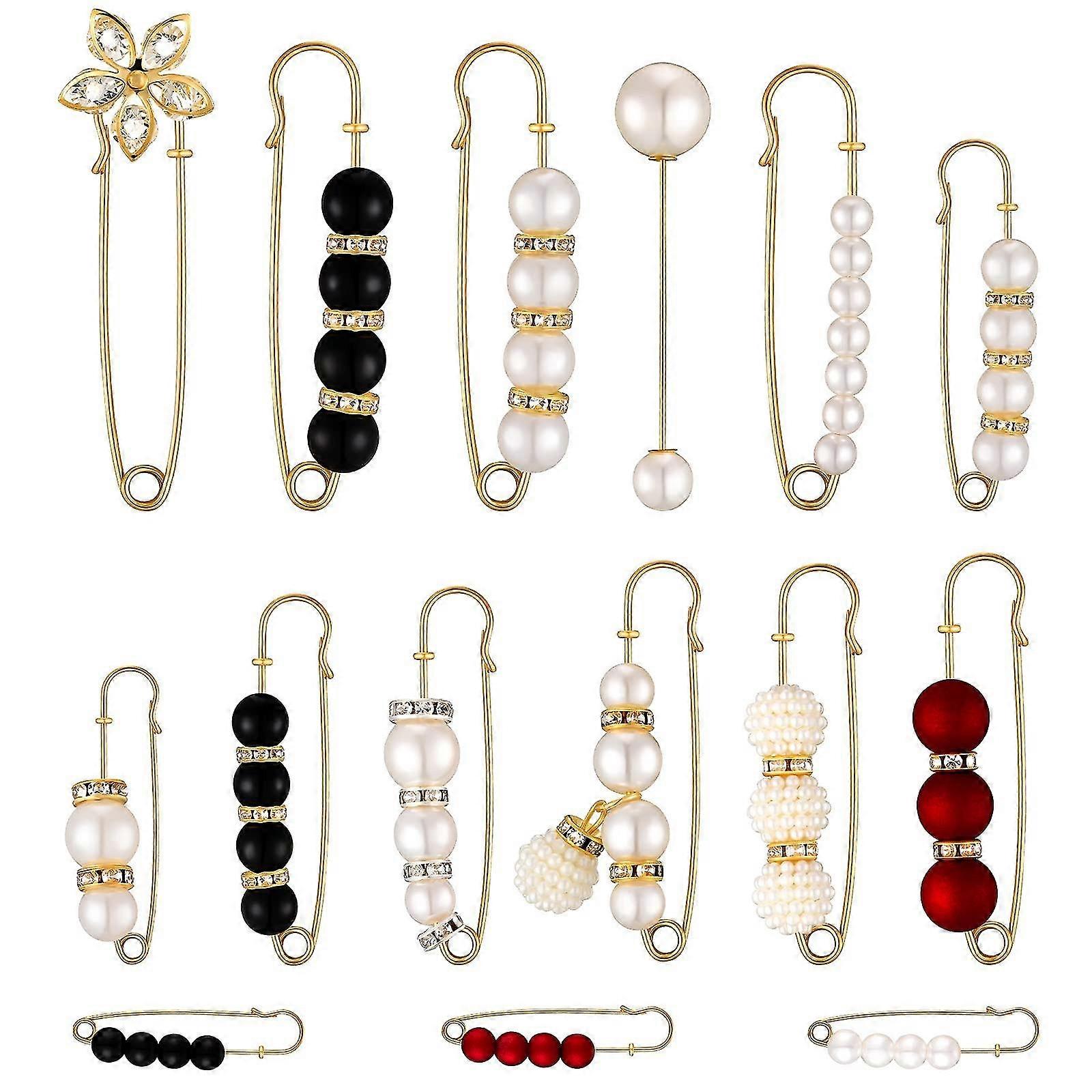 15pcs Sweater Clips Heavy Duty Safety Pins Faux White Pearl Brooch Pin Dress Clip Hat Shawl Pin Rhi
