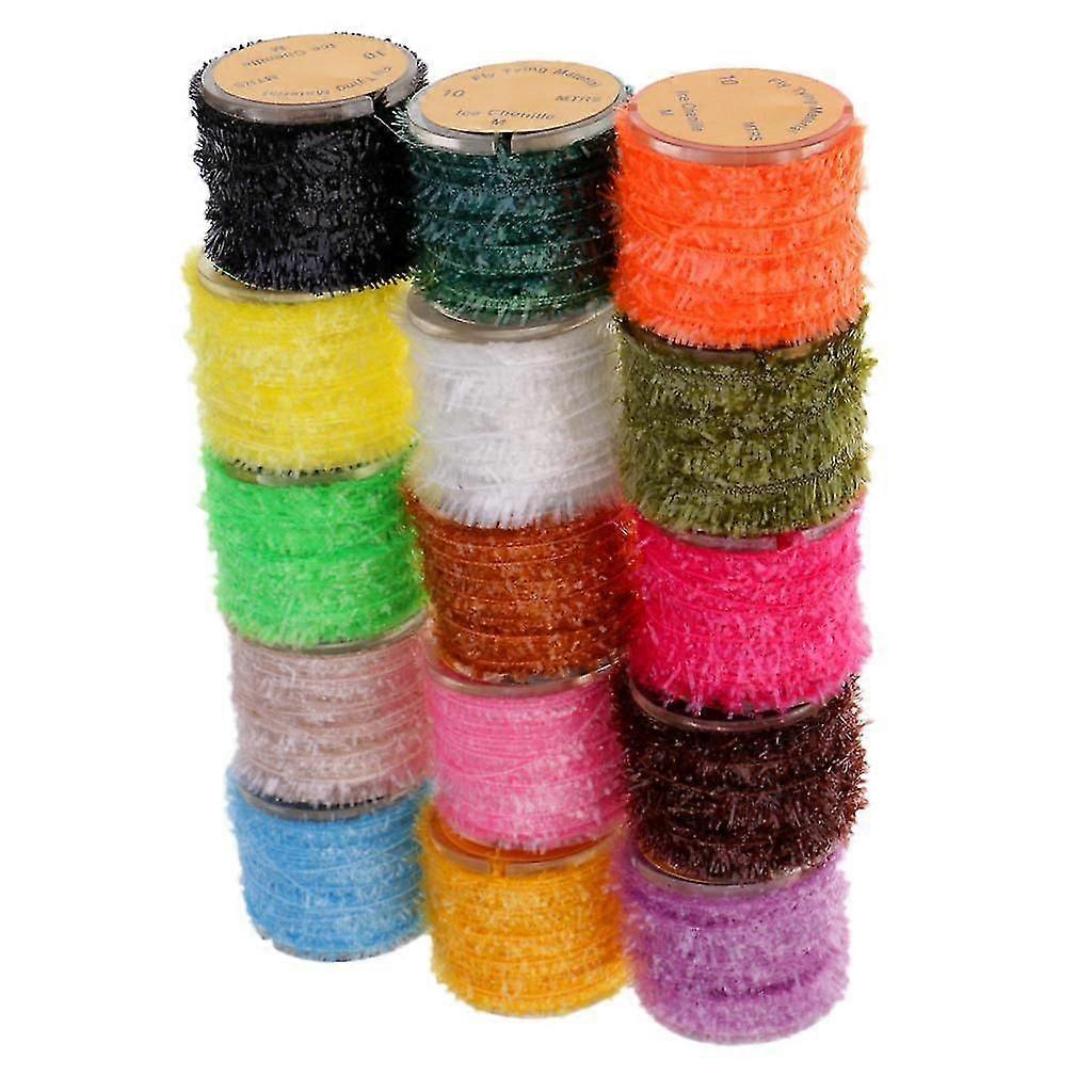 15 Rolls Fly Fishing Tinsel Chenille Crystal Flash Line Fly Tying Materials