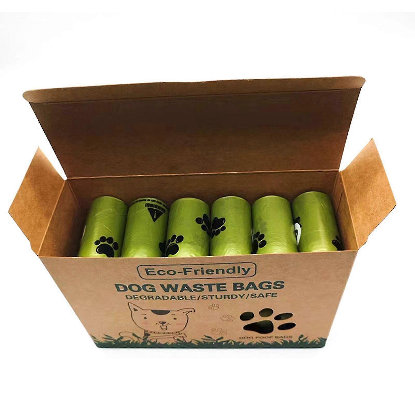 Eco-friendly Pet Poop Bags, Thickened 1.5s Dog Waste Bags, Portable Doggy Garbage Bags In Grass Green Print, 8 Rolls In Box, 256g