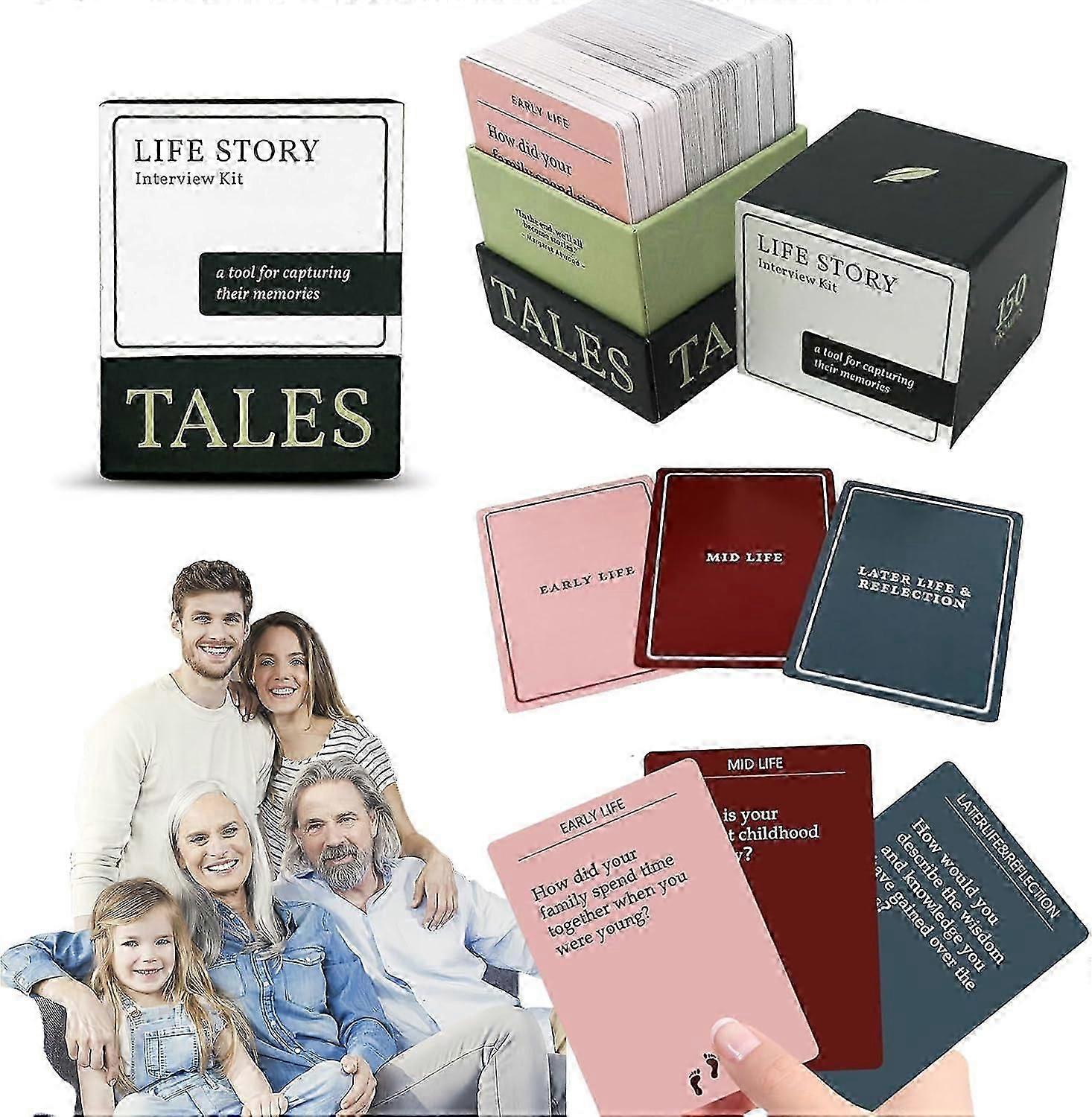 150 Pcs Life Story Interview Kit Cards, Tales Life Story Interview Kit, Get to Know Parents and Grandparents for Family Pictionary Game Night with Cur