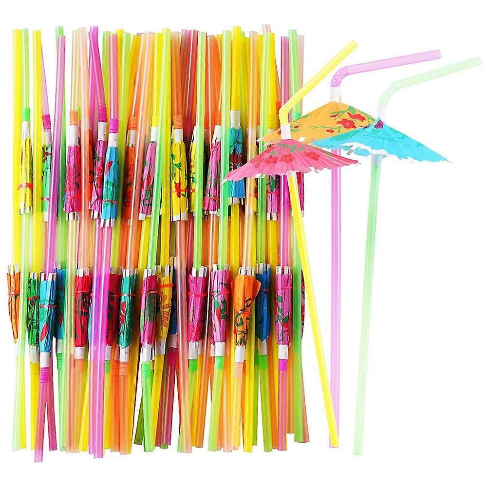 150 Pcs Umbrella Straws Colourful Disposable Bendable Drinking Straws for Beach Theme Parties Bar D