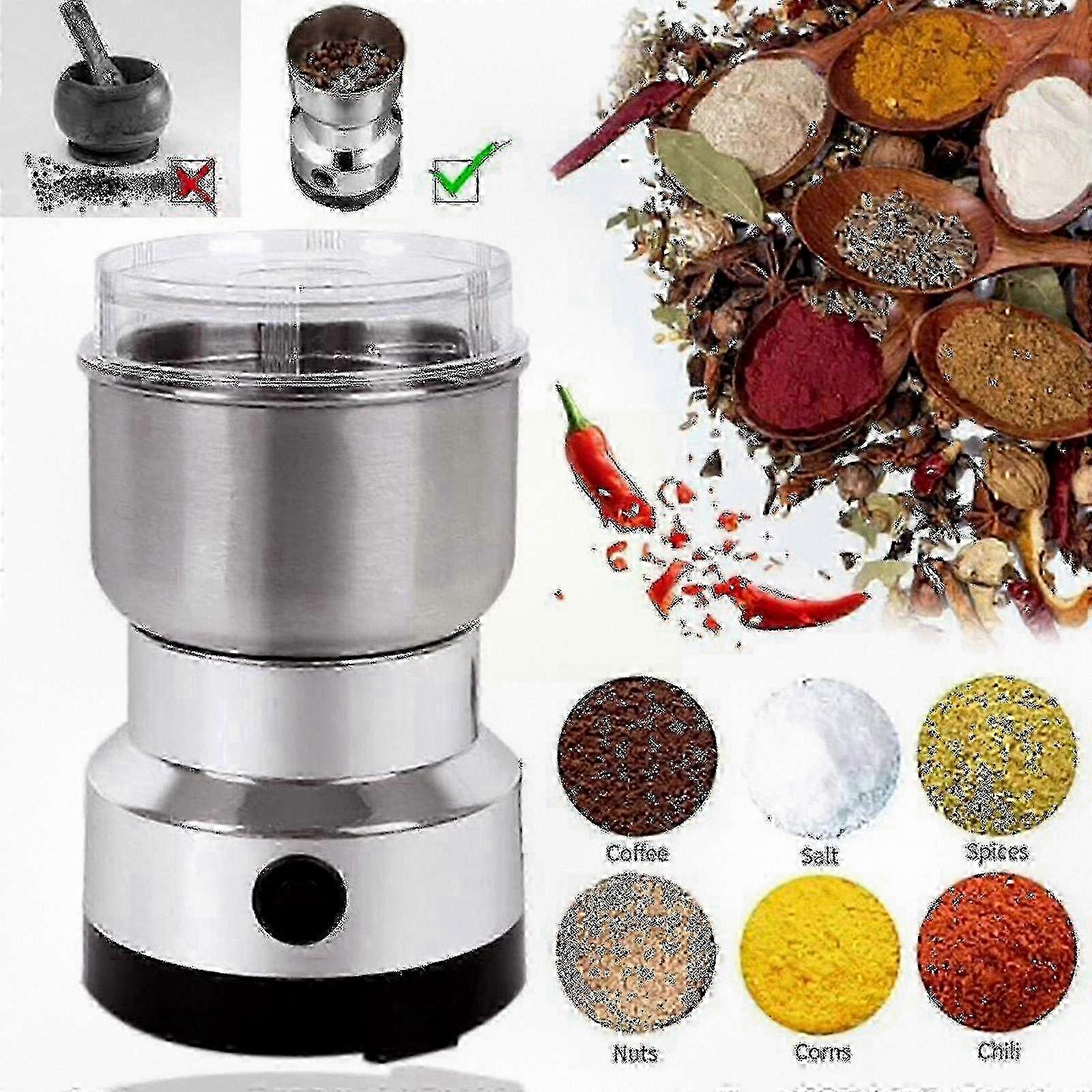 <strong>Features:</strong><br>1. Four Stainless Steel Blades: This electric grinder features food-grade stainless steel blades and a robust motor, allowing you to grind coffee beans quickly and without vibration.<br>2. Versatile Grinding: This small household grinder is perfect for grinding a variety of dry ingredients, including spices, beans, grains, nuts, and more, making it great for daily use.<br>3. User-Friendly: Simply press the on/off button to start grinding; release it to stop. You can easily check the consistency of the ground food through the clear lid.<br>4. Easy to Clean: The grinder's polished surface allows for smooth cleaning. Note that it should not be used for wet foods, and the container and base should not be submerged in water.<br>5. Portable Design: Compact and lightweight, this grinder requires minimal counter space and can be easily stored in cupboards or drawers.<br><strong>Description:</strong><br>This small grinder is easy to use, stylish, and simple to clean, making it convenient to carry with one hand.<br><strong>Specifications:</strong><br>Material: Stainless Steel<br>Type: Small Household Grinder<br>Power Supply: US, EU, UK<br>Dimensions: 11*17*11CM<br>Included: 1 Grinder<br><strong>Notice:</strong><br>Color variations may occur due to different monitor settings. Manual measurements may have minor errors, which are normal. Please contact us for any issues, and we will provide prompt assistance. Thank you.