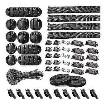 152 Pcs Cord Organizer Kit, Include Self Adhesive Clips, Cable Sleeves Management Clips Tw