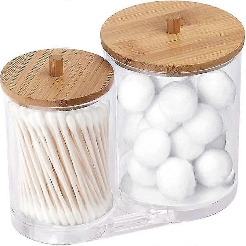 Cotton Swab Holder, Cotton Dispenser, Cotton Box, Storage Box, with Wooden Lid, Humidity, for Living Room, Bedroom, Bathroom(15.511.8cm)