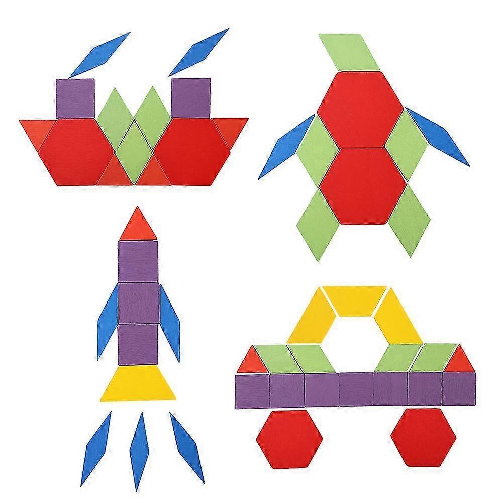 155Pcs Wooden Geometry Shape Tangram Children Building Blocks Puzzle Educational Game Toy