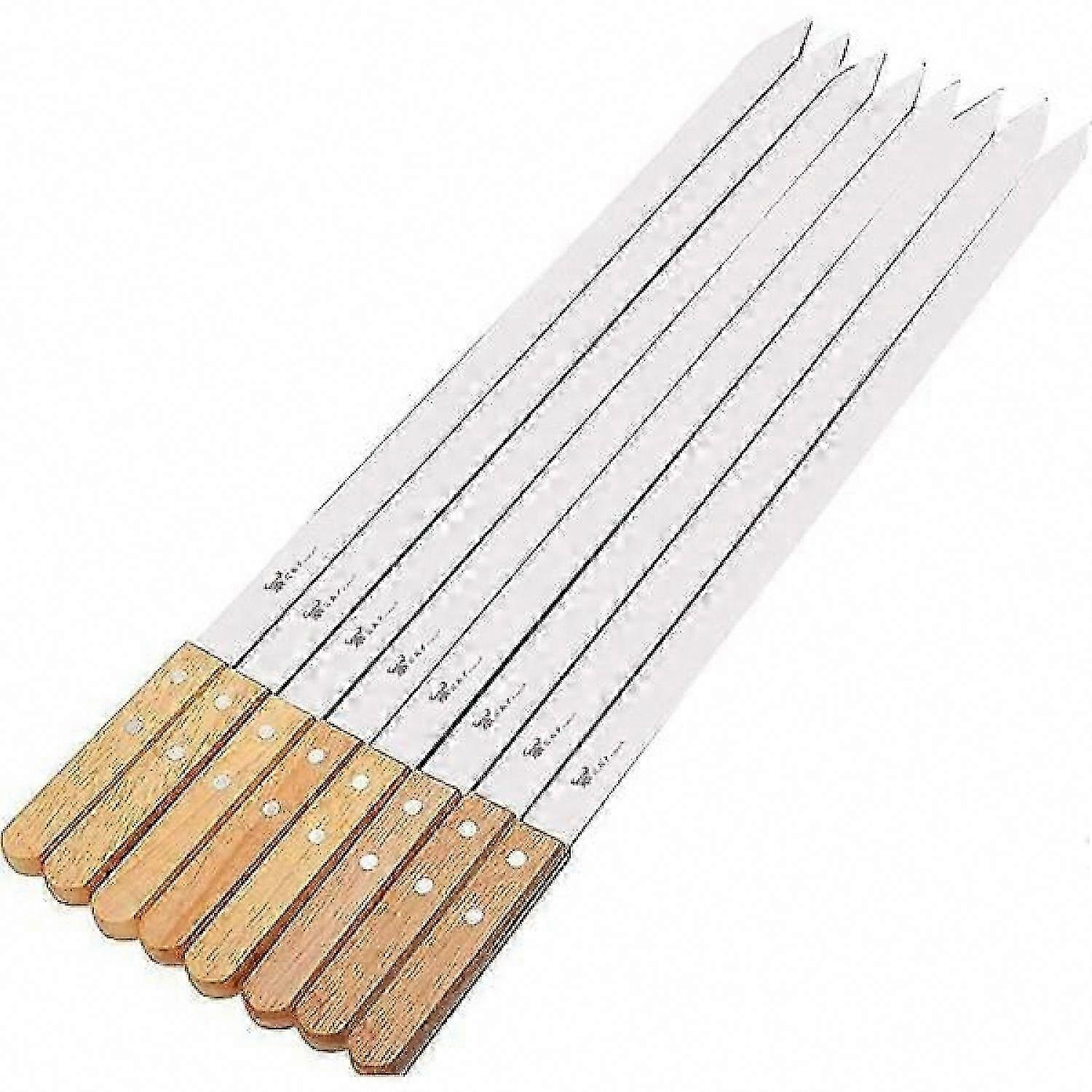 15.75" Long 5/8" Wide 2mm Thick Stainless Steel Grilling Skewers, 8-Piece Set, Silver