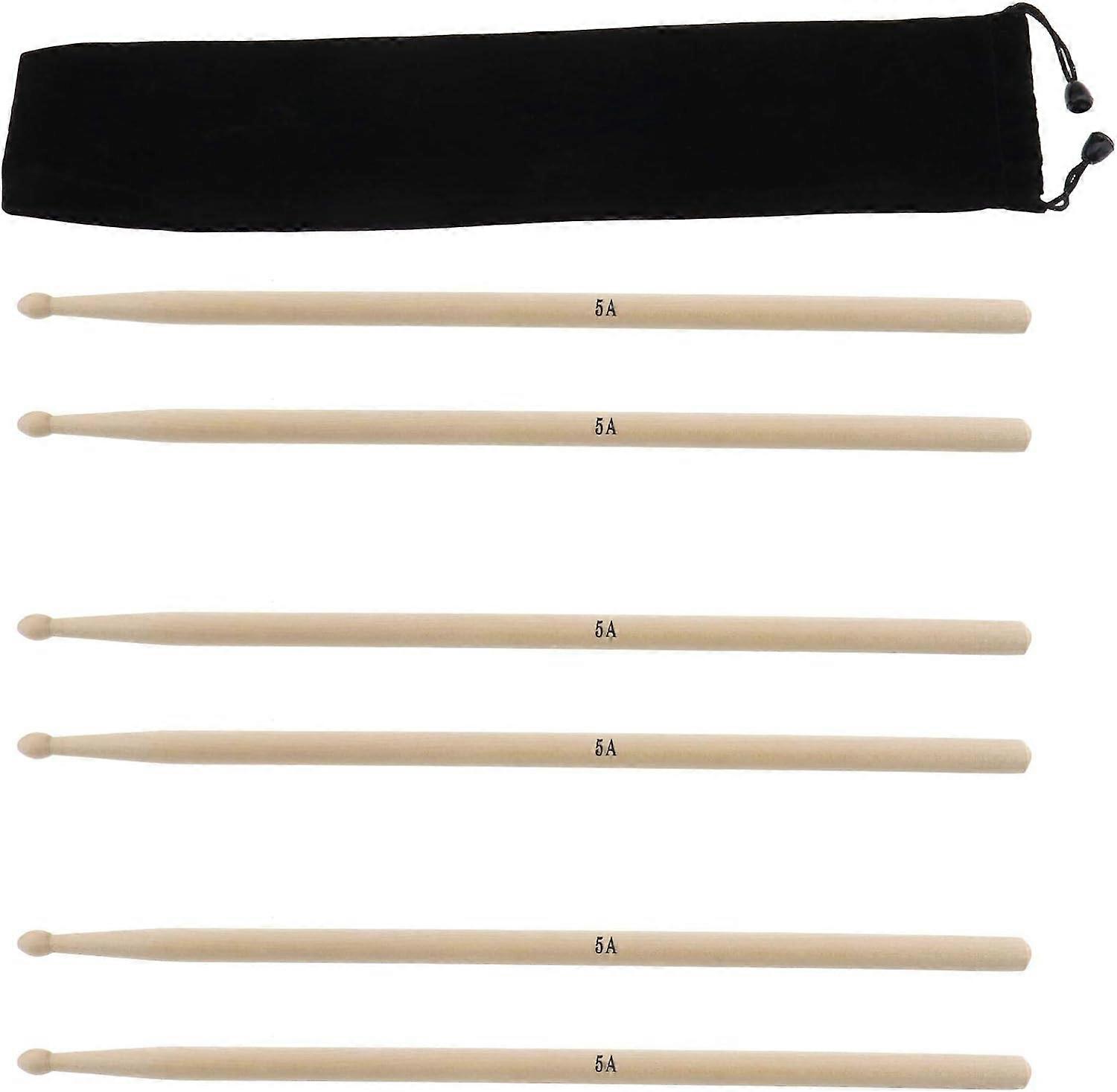 16 Inch Standard Size Drumsticks 5A Maple Wood Drum Sticks 6pcs/Set with Carrying Bag for Rock Band Players
