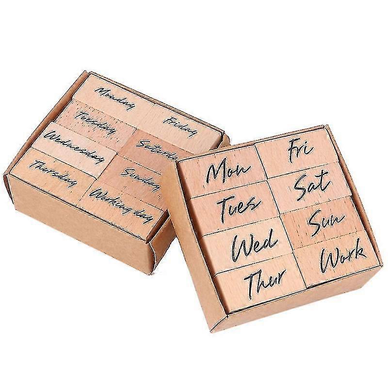 16 Pcs In 2 Set Diy Wooden Antique Stamps Week Letter And Abbreviation Seals Retro Stamps For Diary Album Diy Stamps Hand Account