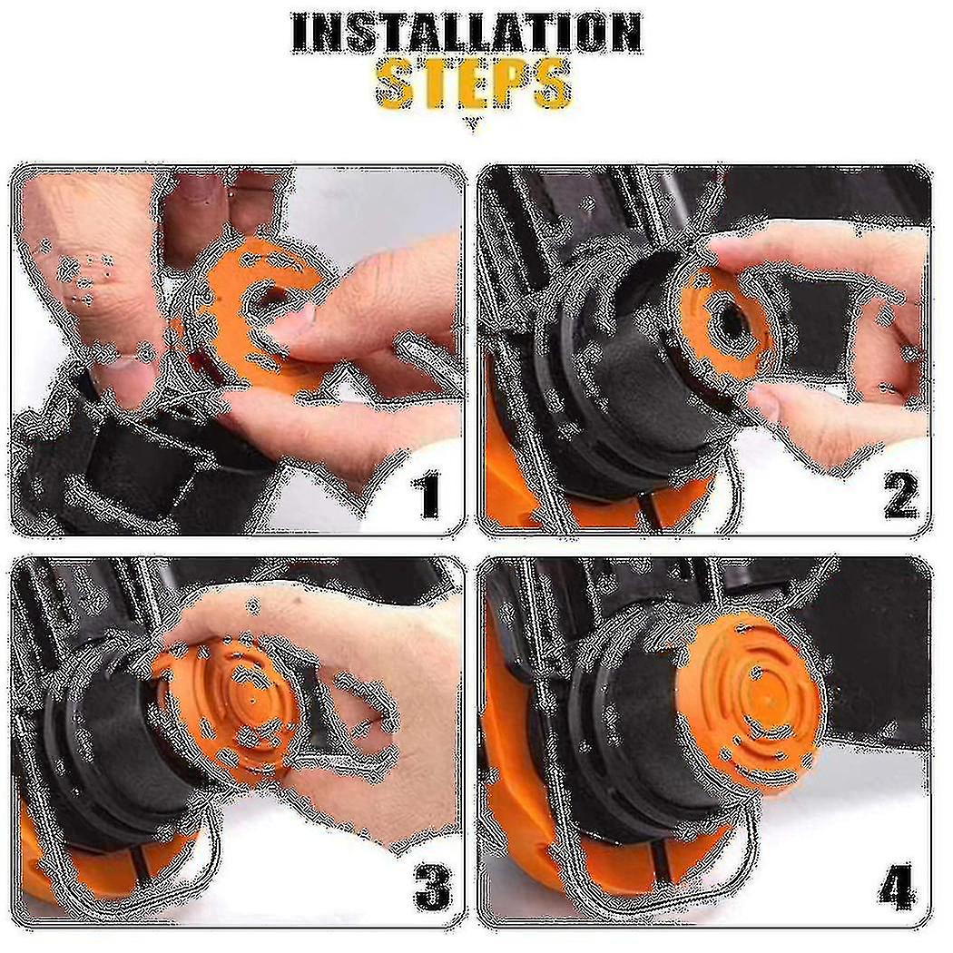 These replacement WA0010 spools are compatible with following models: WG150, WG151, WG151.5, WG152, WG153, WG154, WG155, WG155.5, WG156, WG157, WG160, WG160.1, WG160.2, WG160.3, WG160.4, WG162, WG163, WG165, WG166, WG166.1, WG167, WG174, WG175, WG175.1, WG176, WG180.These Cordless grass trimmer spool line is 0.065 INCH thick has over 100 lbsof tensile strength,Each spool comes -wound, so you can just it into your trimmer and to work. Each spool contains 10 feet of string, a wider range of mowing.This grass trimmer edger line Made by ABS spool & durable polyamide nylon thread and flexible , So you 't worry about the spool lines life, For the same length lines, this WA0010 spool can work time than other string trimmers ,Only suitable for weed grass,Tough and strong weeds use blades to .The trimmer replacement spool utilizes centrifugal force and aerodynamics to reduce drag ,Achieve fast cutting and utilizes centrifugal force to feed the trimmer line as it is needed. The auto feed system replacement spool eases the work of hand-winding spools.size:Material:plasticcolour:OrangePackage Contents:14 x Spools2 x CapsOnly the above package content, other are not included.Note: Light and different displays may cause the color of the item in the a little different from the real . The measurement allowed is +/- 1-3cm.