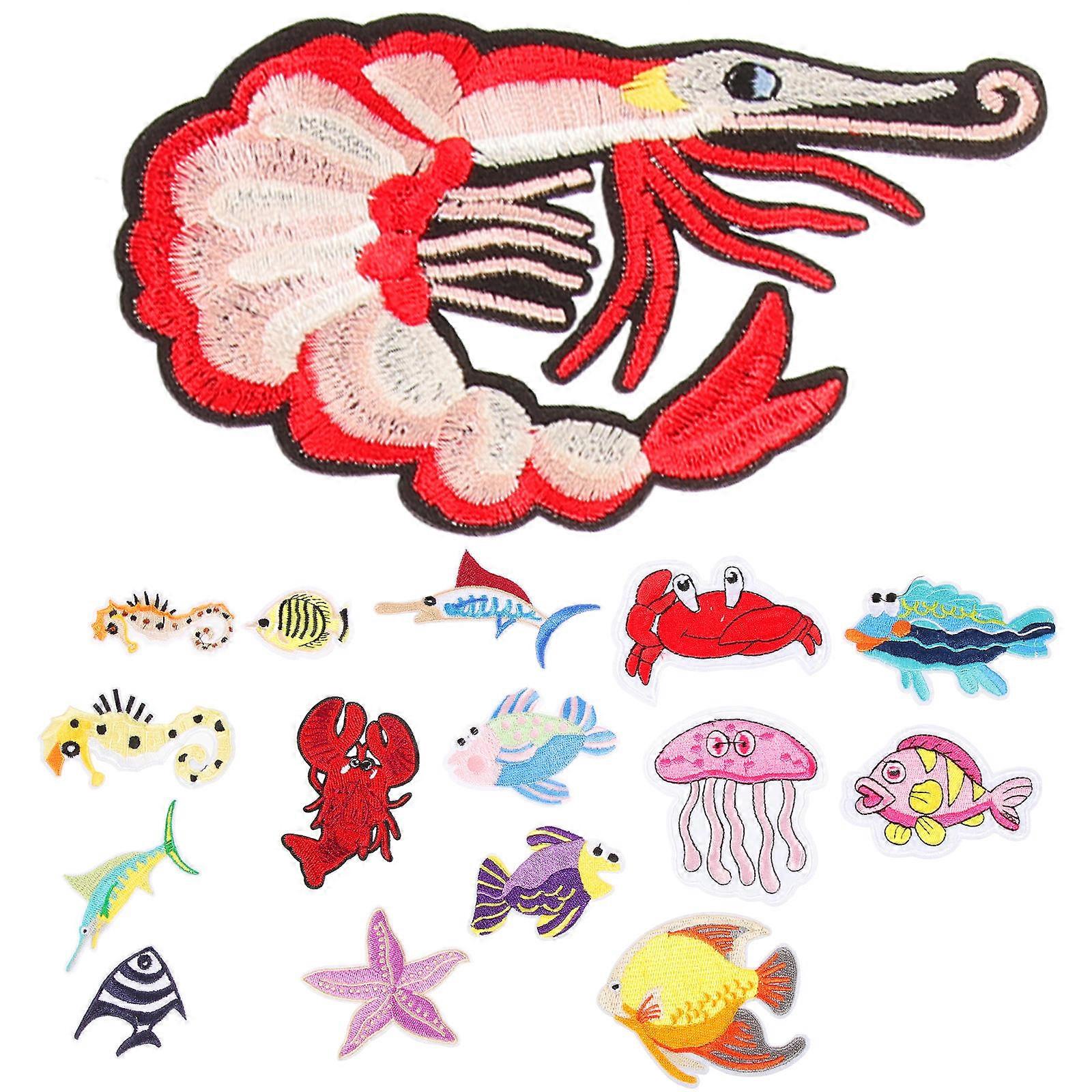16PCS Ocean Creature Embroidered Iron On Patches Set Creative DIY Sewing Motifs for Clothing, Bags & Crafts Personalize & Repair Your Style
