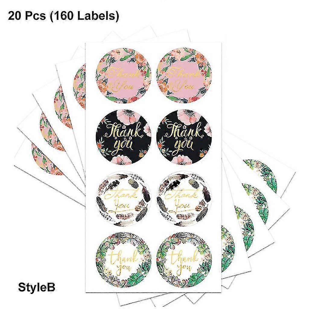 160pcs 4 Designs Flower Thank You Sticker Wedding Favors Gift Package Seal Label