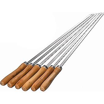 16.5in/42cm Flat Kebab Skewers Stainless Steel Barbecue Skewers with Wooden Handle, Set of 6