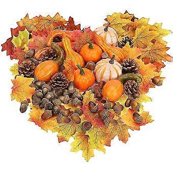 166pcs Starlight-artificial Pumpkins For Decoration, Halloween Harvest Thanksgiving Decoration Mini Artificial Pumpkins And Gourds Maple Leaves Moss P