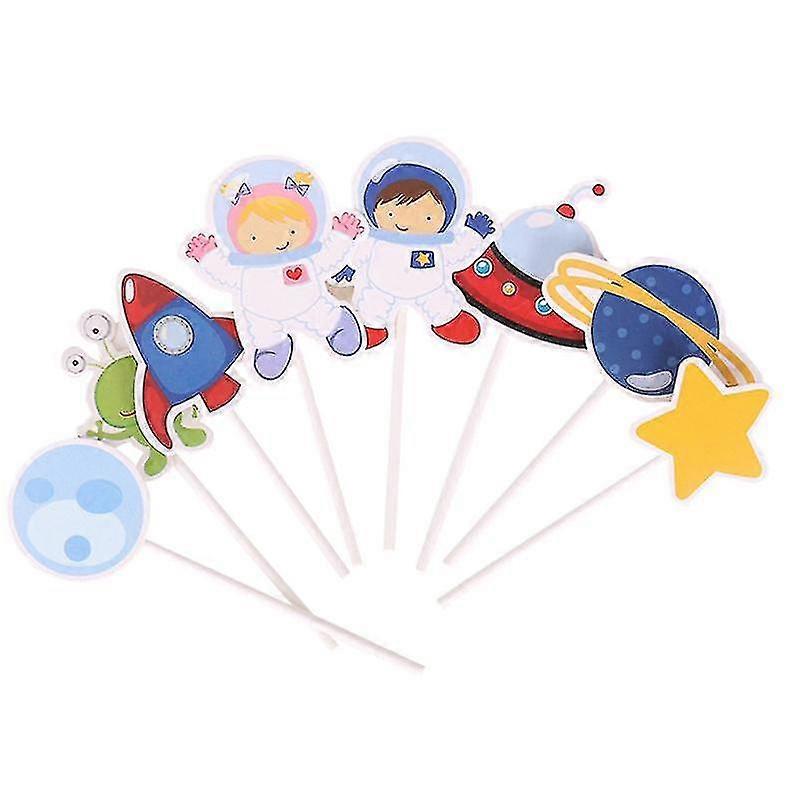16pcs Space Astronaut Cupcake Toppers Cake Decorations For Space Theme Party Kids Birthday Party Baby Shower Small Size