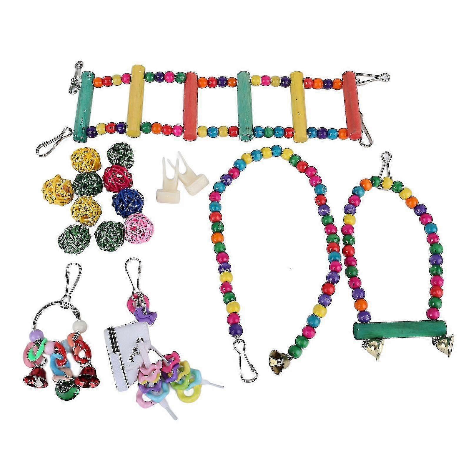 17Pcs Bird Cage Hanging Toys Parrot Swing Standing Chewing Hanging Toy with Hammock Hanging Ladder Rattan Balls Rope