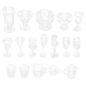 17pcs Doll House Miniature Tableware Model Kitchen Tableware Ornament Miniature Cup 1:12