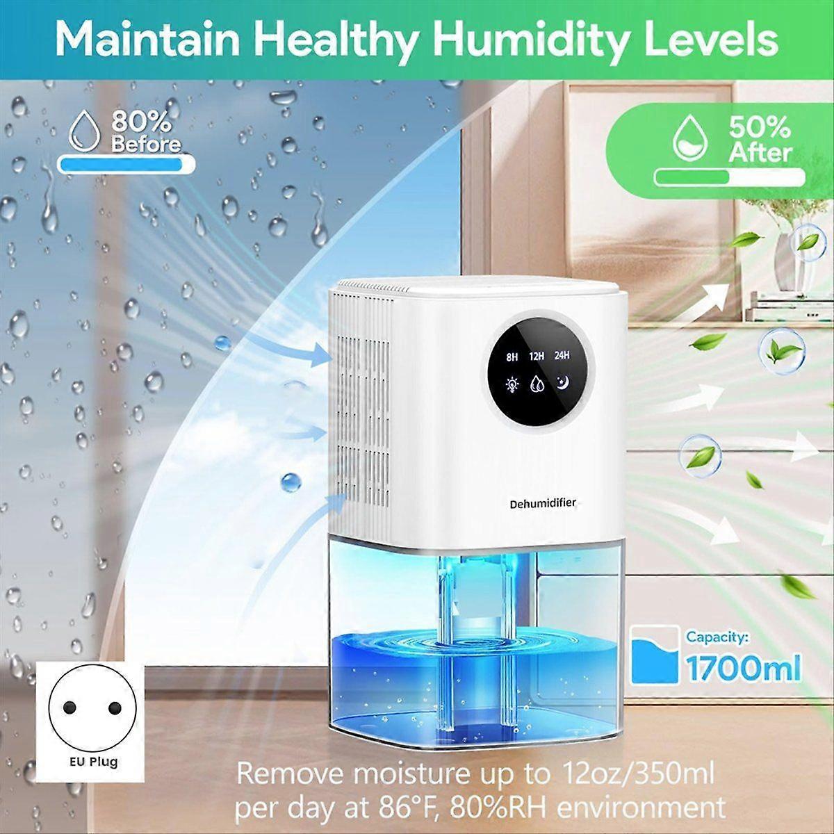 1700ML Air Dehumidifier,Quiet Dehumidifiers Home with 7 Color LED Timer & Auto Shut-Off for Bedroom