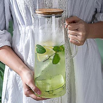 1.7l Glass Water Pitcher With Handle Bamboo Lid Heat Resistant Cold Hot Kettle Capacity Tea Pitcher (tangling)