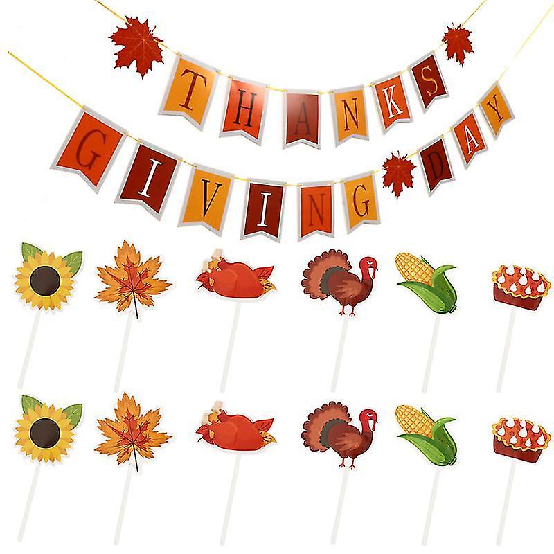 17X13.5cm Assorted Color Party Supply Kits 13pcs Thanksgiving Banner Maple Leaf Banner Thanksgiving