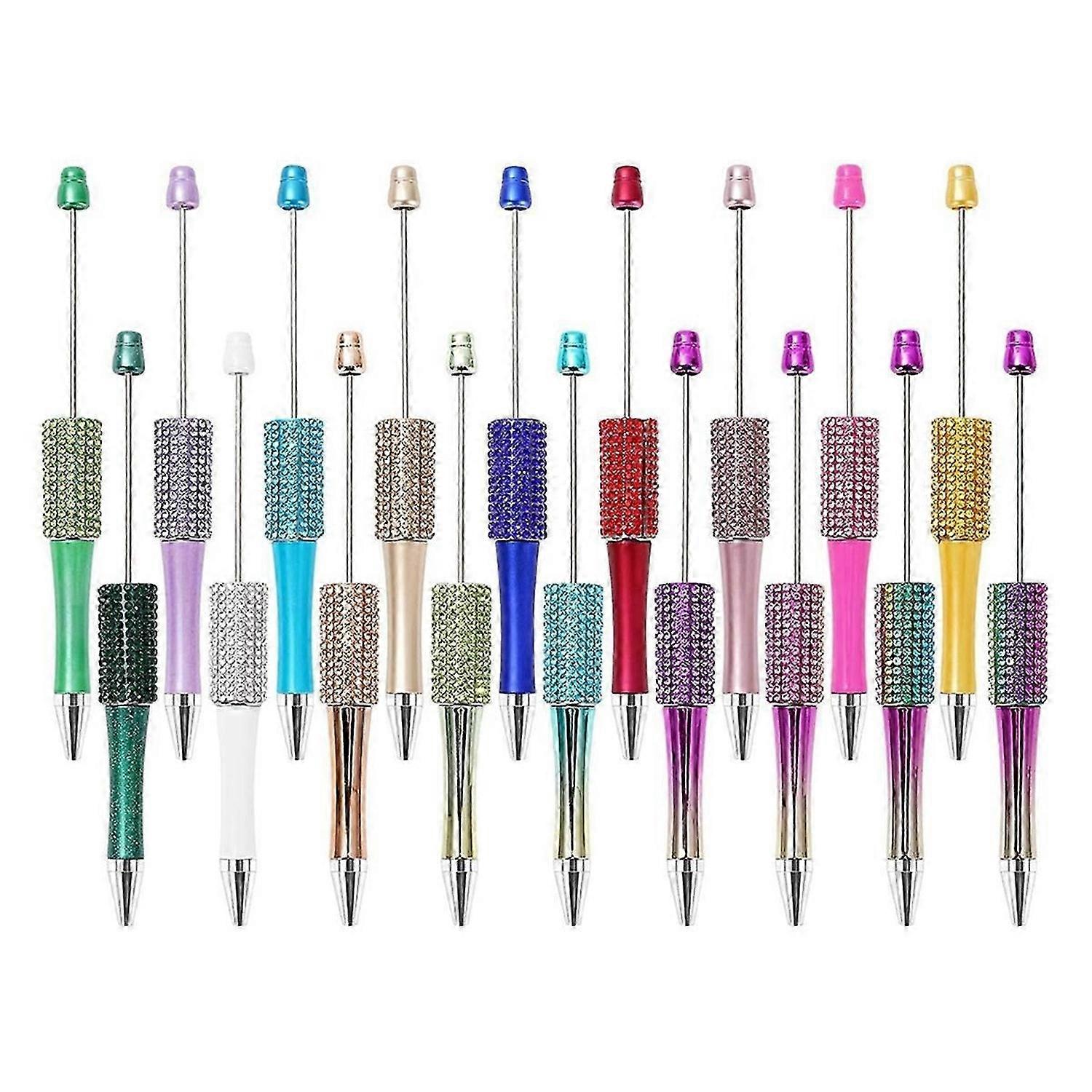 18Pcs Diamond Beadable Pen 18 Colors Plastic Bead Ballpoint Pen