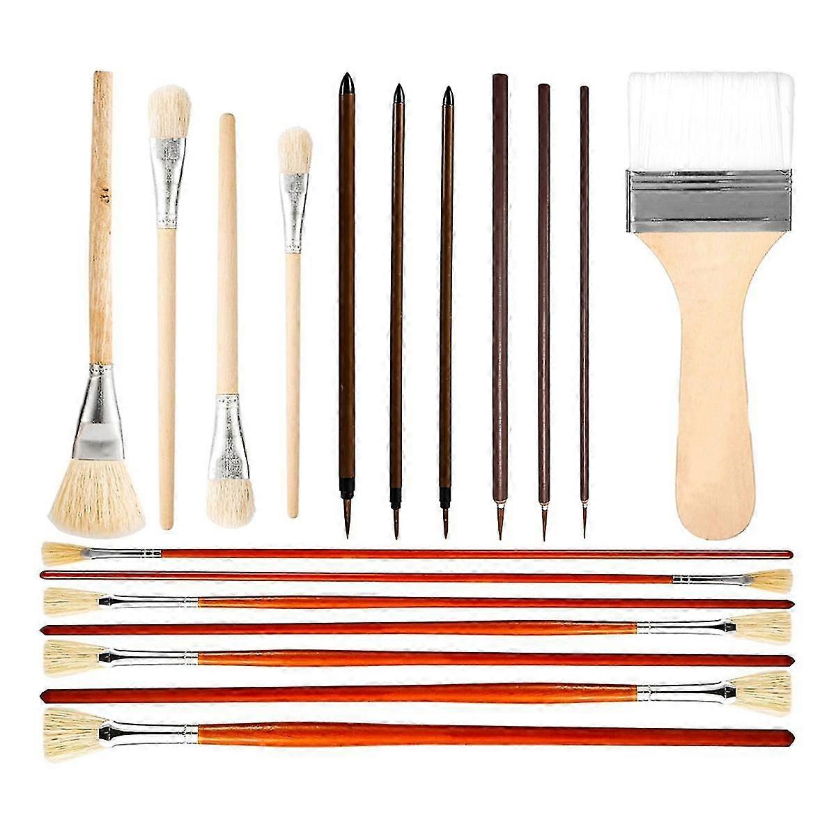 18pcs Pottery Glaze Brushes, Wood Long Handle Artist Fan Paint Ceramic Brushes Set For Acrylic Oil Painting Pottery