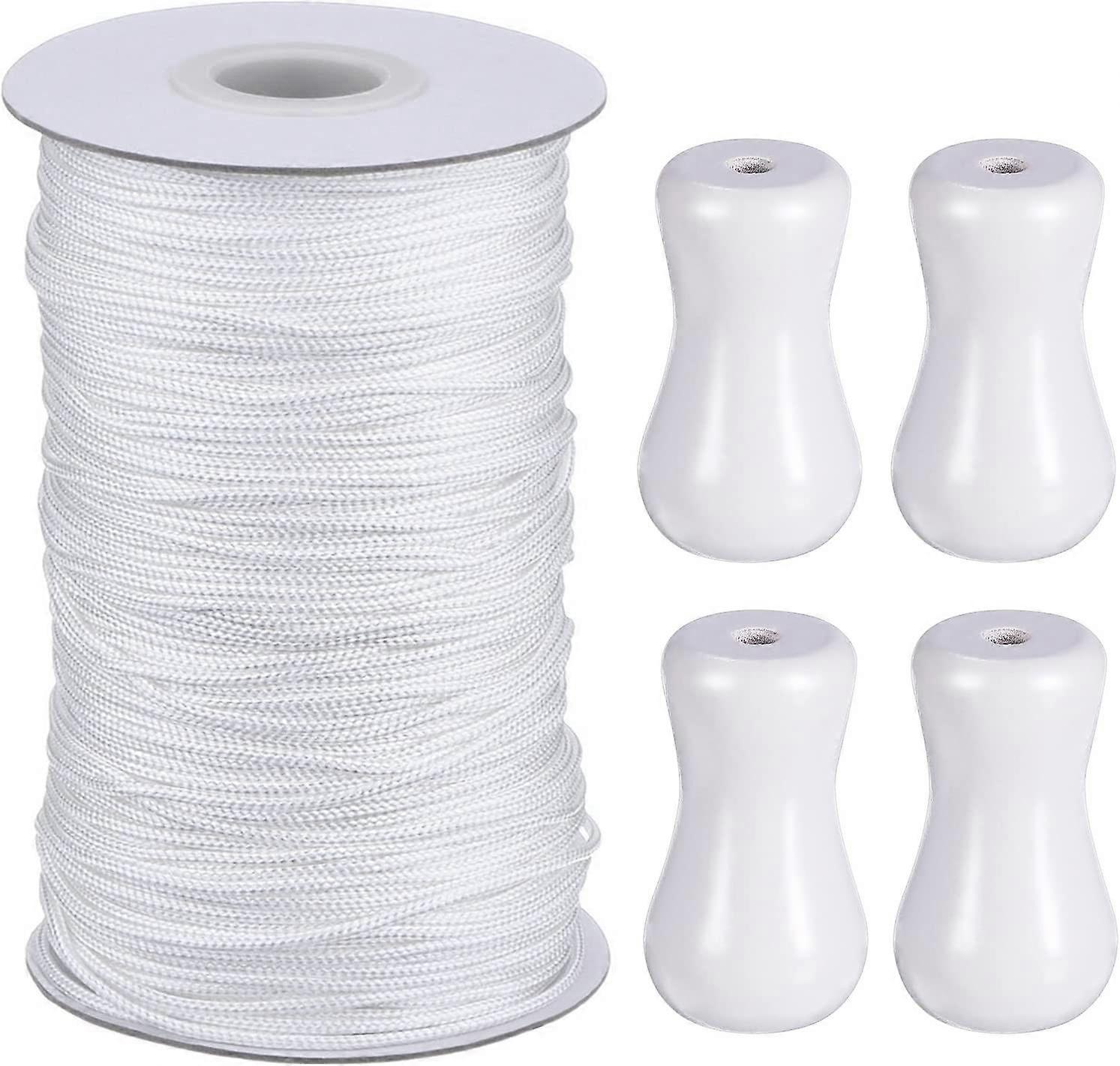 1.8 mm White Braided Lift Shade Cord 55 Yards/Roll with 4 Pieces White Wood Pendant for Aluminum Blind Shade, Gardening Plant and Crafts (White)5Pcs