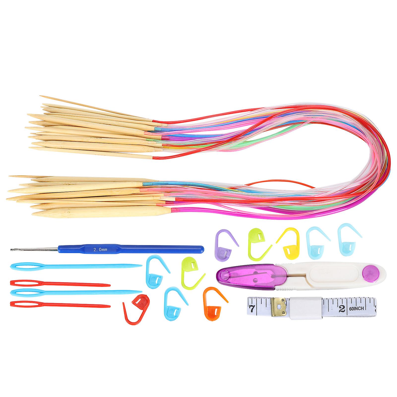 18Pcs Circular Needle DoublePointed Bamboo Color Tube Needlework Tool with Accessories Pack(80cm Accessories Pack )