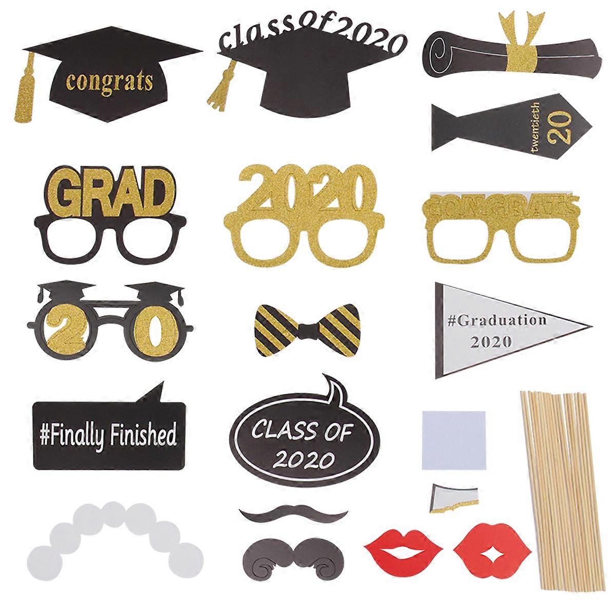 18pcs 2020 Graduation Glitter Paper Handheld Photo Props Set Creative Party Glasses Graduation Hat Decoration Photo Booth Props Set Prom Masquerade Pa