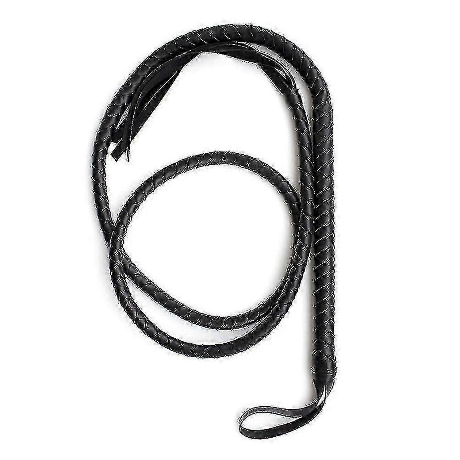 1.9m bull whip leather and suede braided tails equestrian horse whips (black)-e p