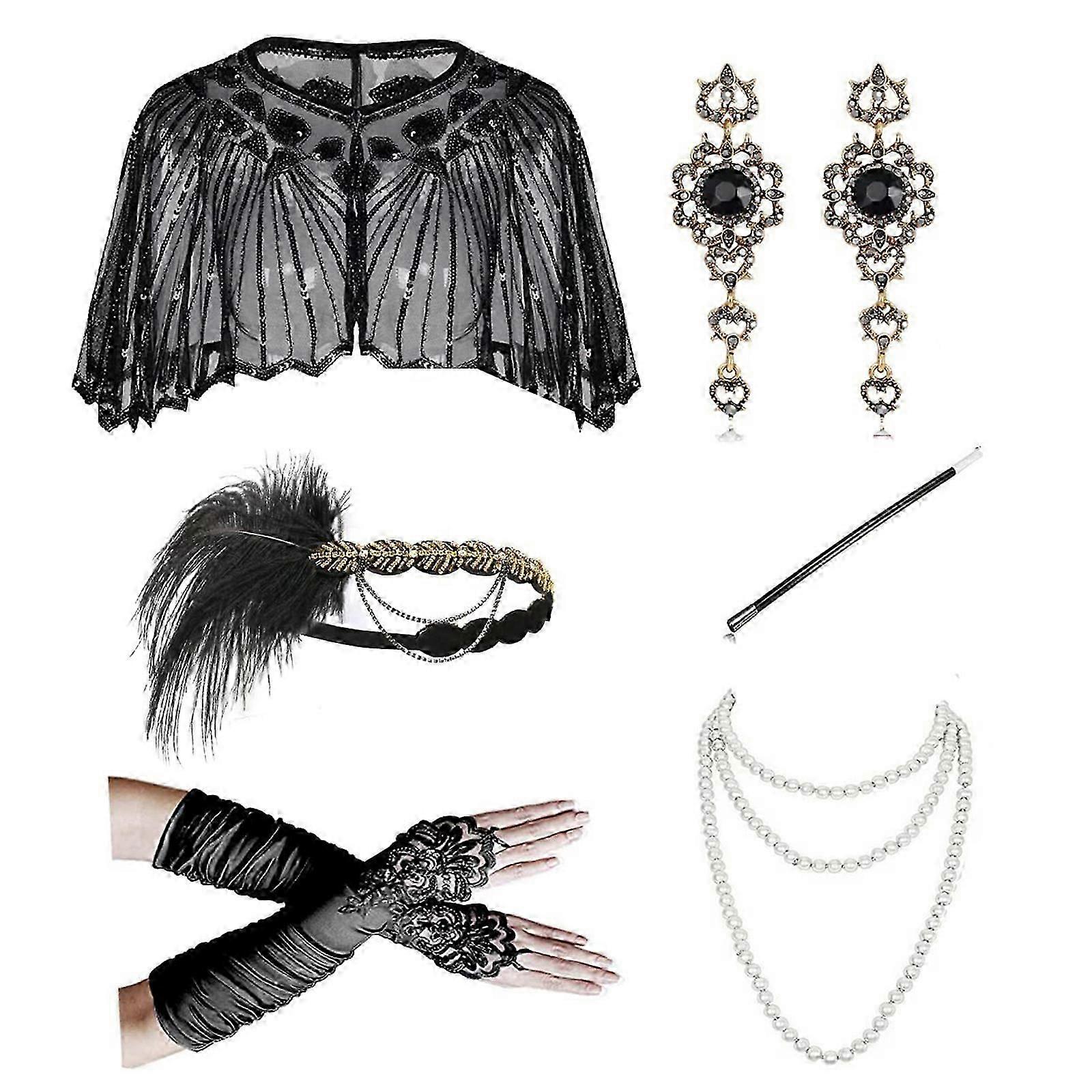 1920s Flapper Gatsby Party Costume Accessories for Women Vintage Rhinestone-Headpiece Dangling Earring Makeup Party Wear