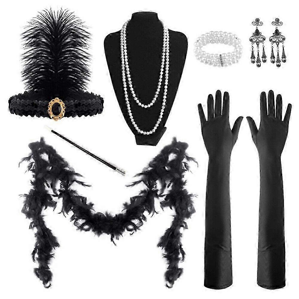 1920s Flapper Headband Necklace Gloves Boa Set for Great Gatsby Party,