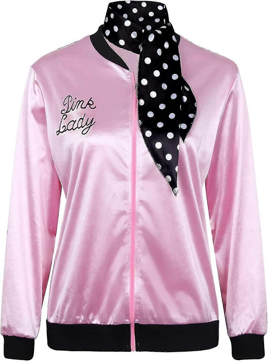 1950s Women Lady Girls Pink Satin Jacket Halloween Cosplay Costume Fancy Dress Coat With Neck Scarf