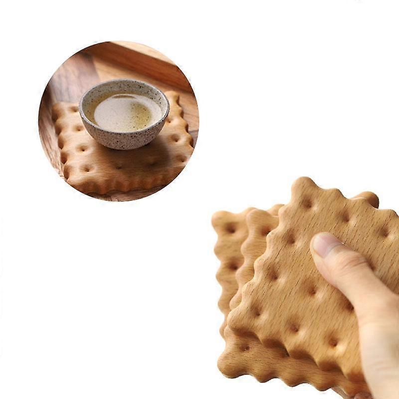 1pc Wood Biscuit Placemat Cup Holder Square Cookie Shape Drink Coasters Tray